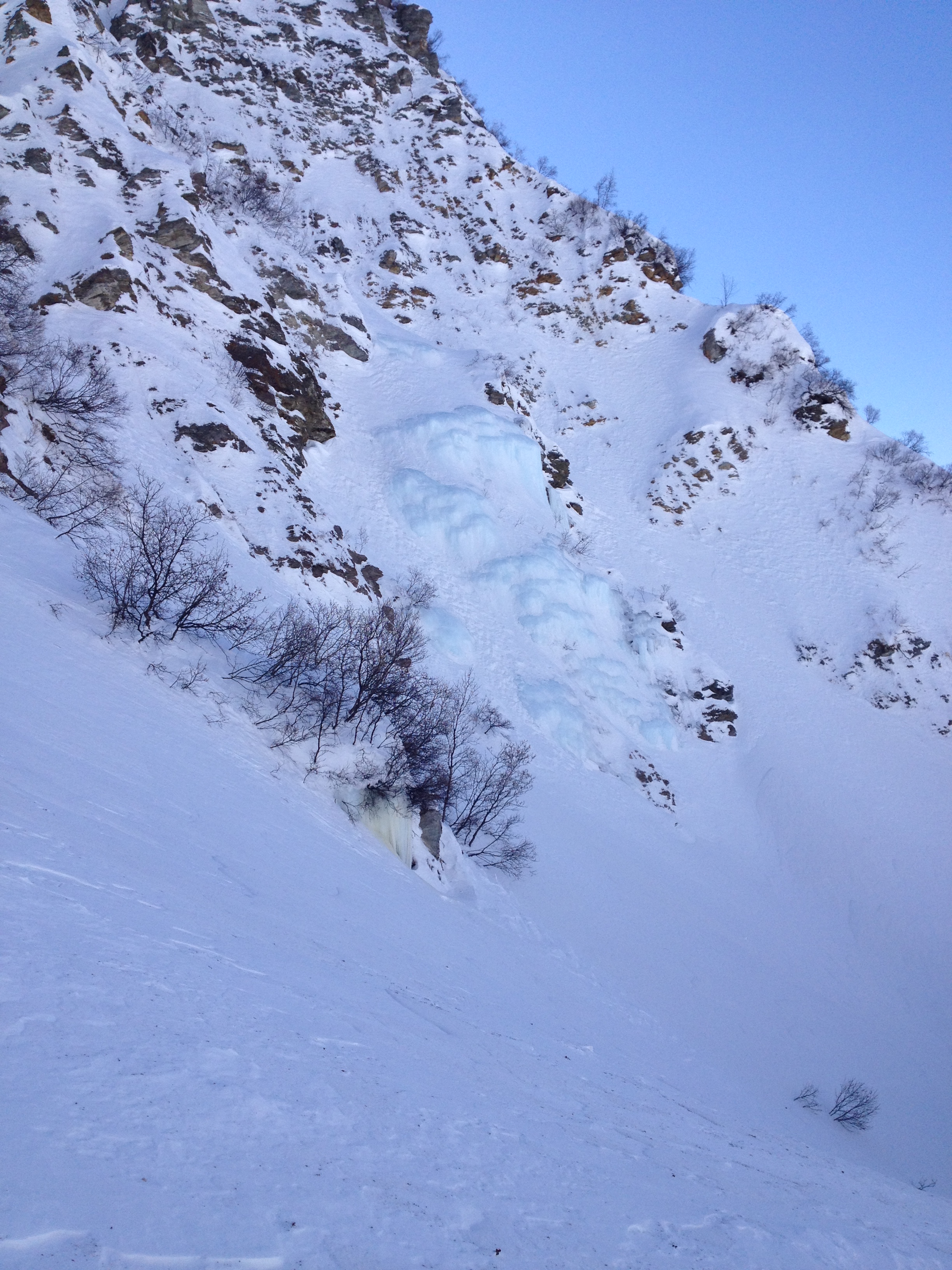 We ski off towards the car in the most wonderful conditions I’ve ever skied on. Dark Side of the Moon was our soundtrack on the way out, but were at slightly different spots in the record, we could hear each other singing along every now and then. Once we started to get into the canyon part of the river things got steeper, there was one section I almost got stuck in a river hole, which I affectionately call “The Motherfucker”.  It’s a really big, consistently forming hole that usually requires you to take off you pack and skis, straddle a little rock ledge, and toss packs and skis over.  We get out around 2 and drive home, the rest of the day is lost in the ether.