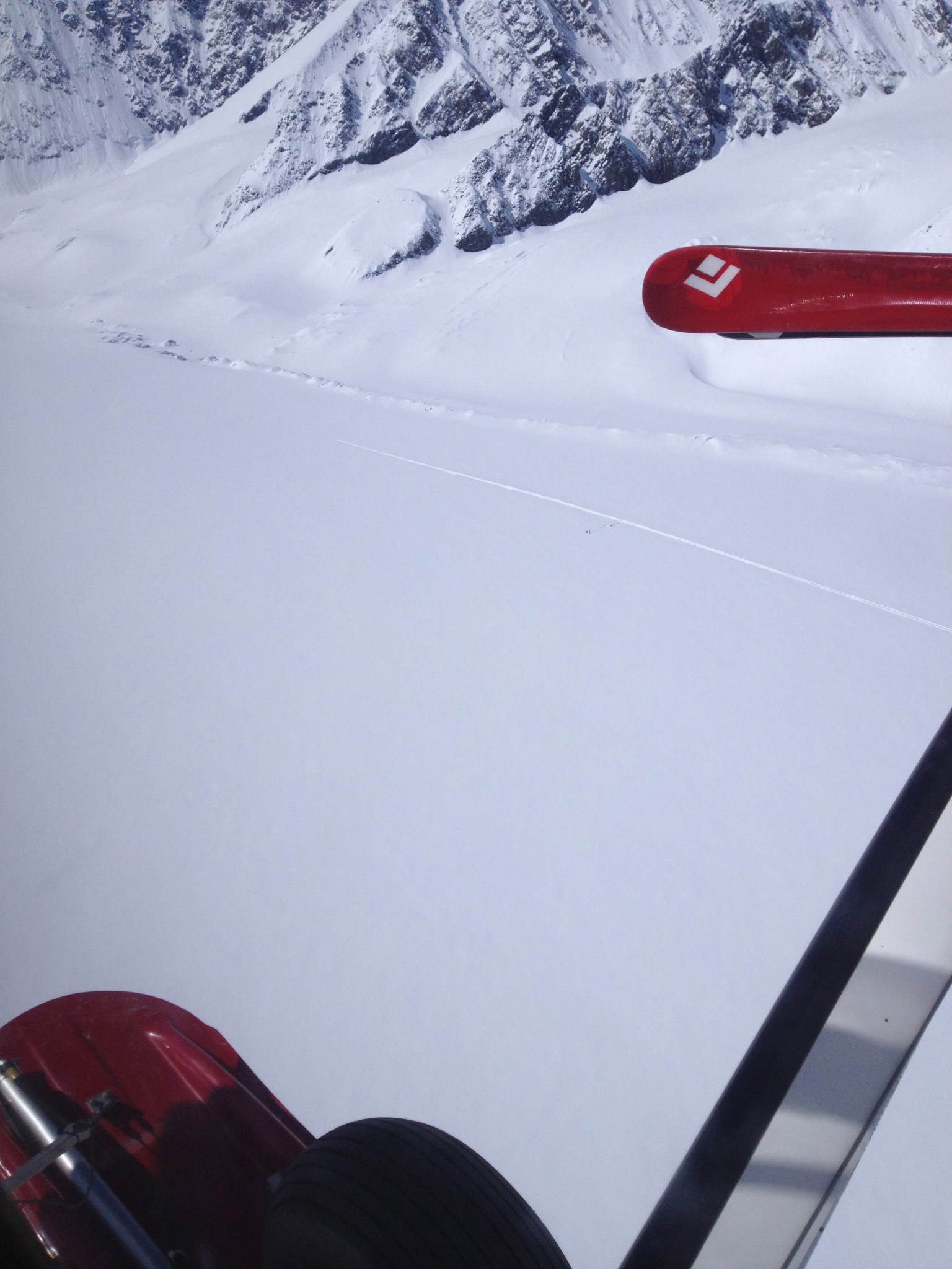 We saw many more over the next few days. It looked like we had 5 or 6 days of amazing weather with no wind, but we hadn’t really considered the storm that had just left the range after depositing 1 to 3 feet of snow everywhere. 3 feet of loose, unconsolidated, dry fluff. We watched the pilot leave and got camp set up. As it was only 4PM we roped up and skied out a ways to pack a trail for the next day and to investigate snow conditions.