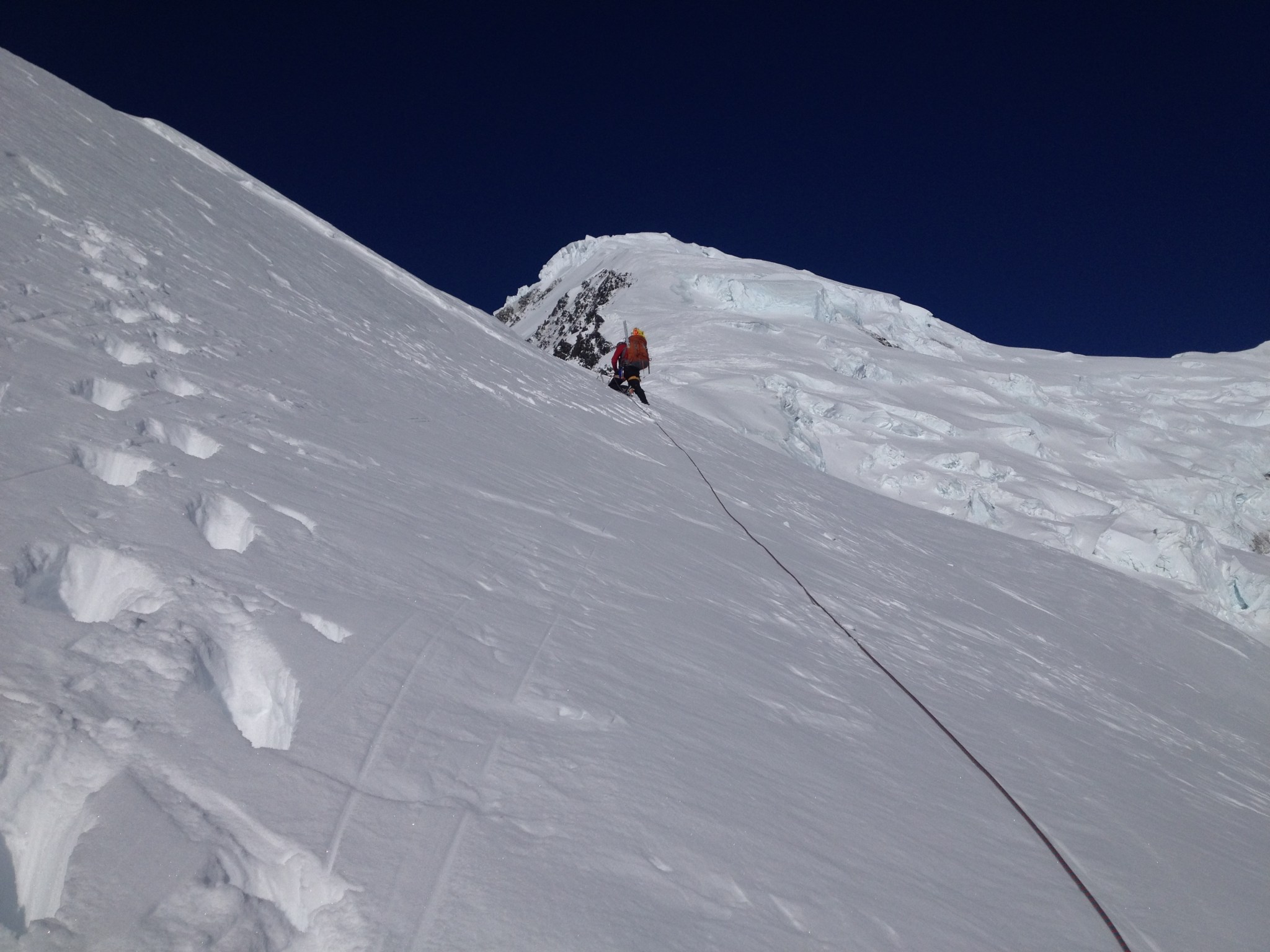 At some point during the day Peter flew around us and took a picture of my ass…but that’s a different story. The next day we awoke at 0200, rousing and boiling water takes longer at high altitude because of the lower pressure, but we were roped up and walking by 5.