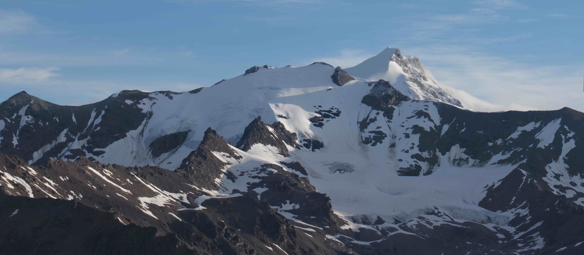 As we approached the true summit around 2PM, Stefan remarked we should probably head down immediately; I asked for 5 minutes to take photos. Didn’t take many to the south because, well, the view was rapidly vanishing. By the time we left the summit, the Institute ridge had disappeared into the storm. It took us about 45 minutes to get from the summit to the false summit, in that time the storm reached us. We made no attempts to climb Item’s other summits.