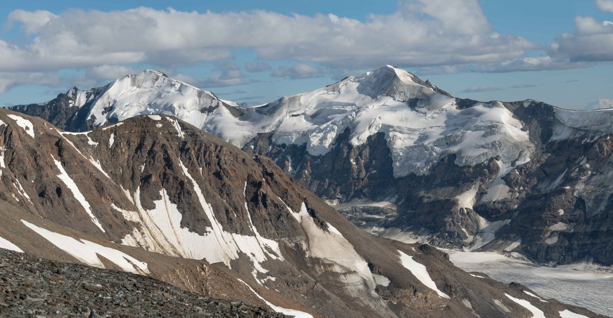The White Princess Branch of the Castner Glacier has melted substantially; the 2025 photo shows the same dark mass of rock above the plateau as shown in the 1973 photo. In the 50’s when the hut was just an idea, the plateau was 100′ above the glacier and visible from higher up on the central branch. In the 70’s, the glacier reached the base of the rocks on the right and I’m fairly certain the prominent red rock was barely uncovered. It now sits halfway up the slope. Regardless, the Thayer Hut is still accessible and the plateau is a wonderful respite from the lifeless landscape surrounding it.