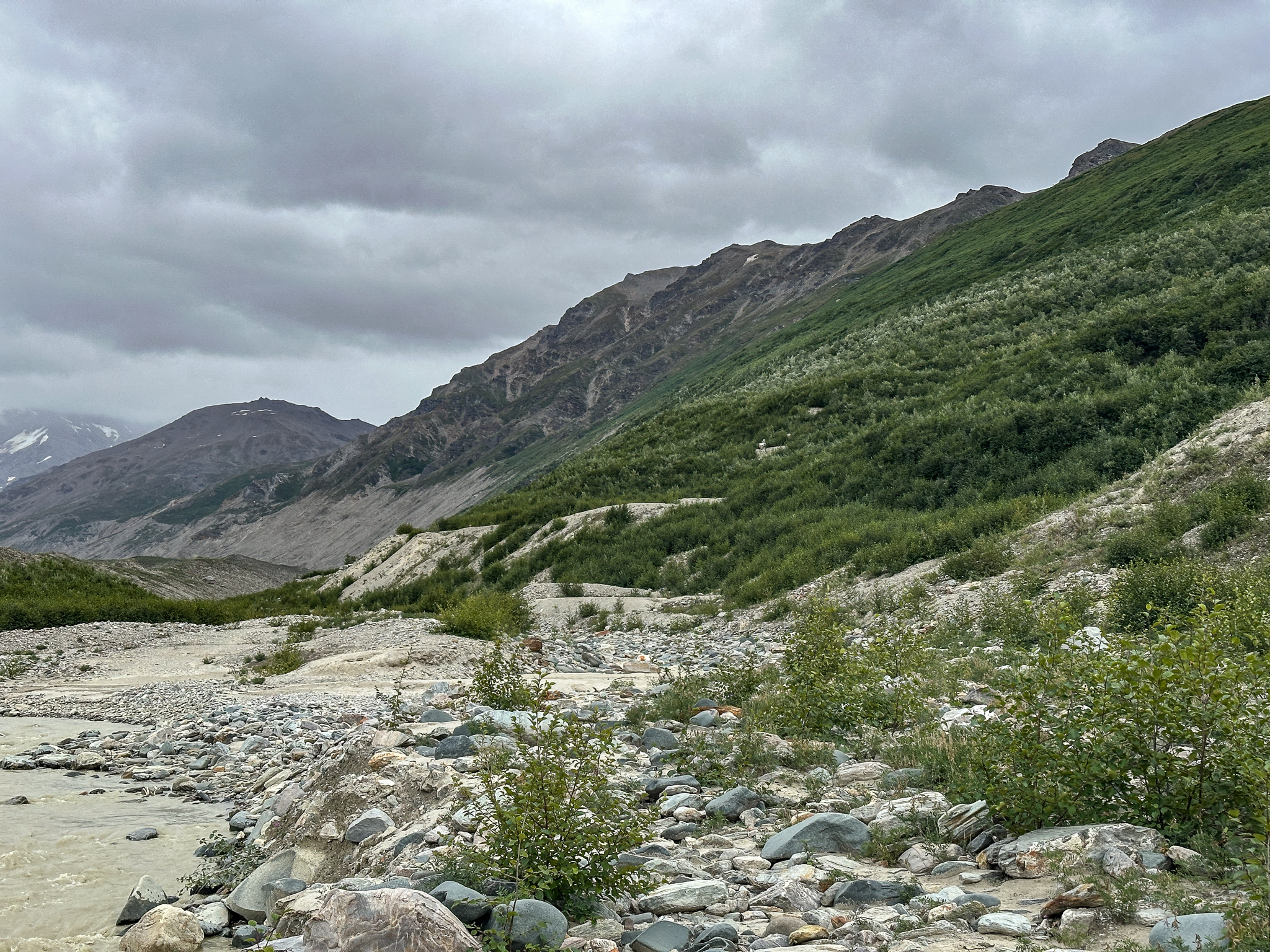 I’ve been visting the range since early 2011 and have noticed changes even in that short period of time. The first hill I skied down on the Castner has melted into riverbed, and the glacier ice Rick and I climbed that fall has since become a pile of rocks. I haven’t traveled up the Castner Glacier since 2019, but the route is always changing. The terminus briefly featured a spectacular ice arch-tunnel in 2014 and I heard rumor there was a lake in 2023, maybe there still is. For the most part, the most consistent feature is the southern portion of the moraine is the best access for the mountaineering: it flows from the relatively flat M’Ladies Branch and is that seems to have resulted in the smoothest moraine.