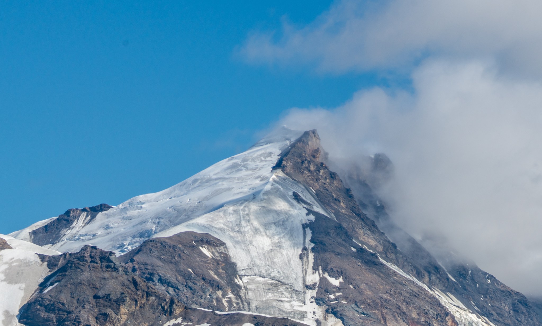 Grant and I were scheming how to get out of town in late summer 2025. I had two adventures on Byron peak the week after Claire and I married, since then the weather had been phenomenal, yet not enough to draw me to the Deltas. A day and a half of relatively clear weather with a cloud ceiling above 10,000′ was my definition of “good weather”. Early August was my aim, as seasonal snow would be at a yearly minimum and new snow might not yet have fallen. I love this time of year on the mountains; not great for climbing, but summit glaciers are exposed and the bare ice formations are wild to behold. When ice is plastered to steep rock, weird and unique formations result.