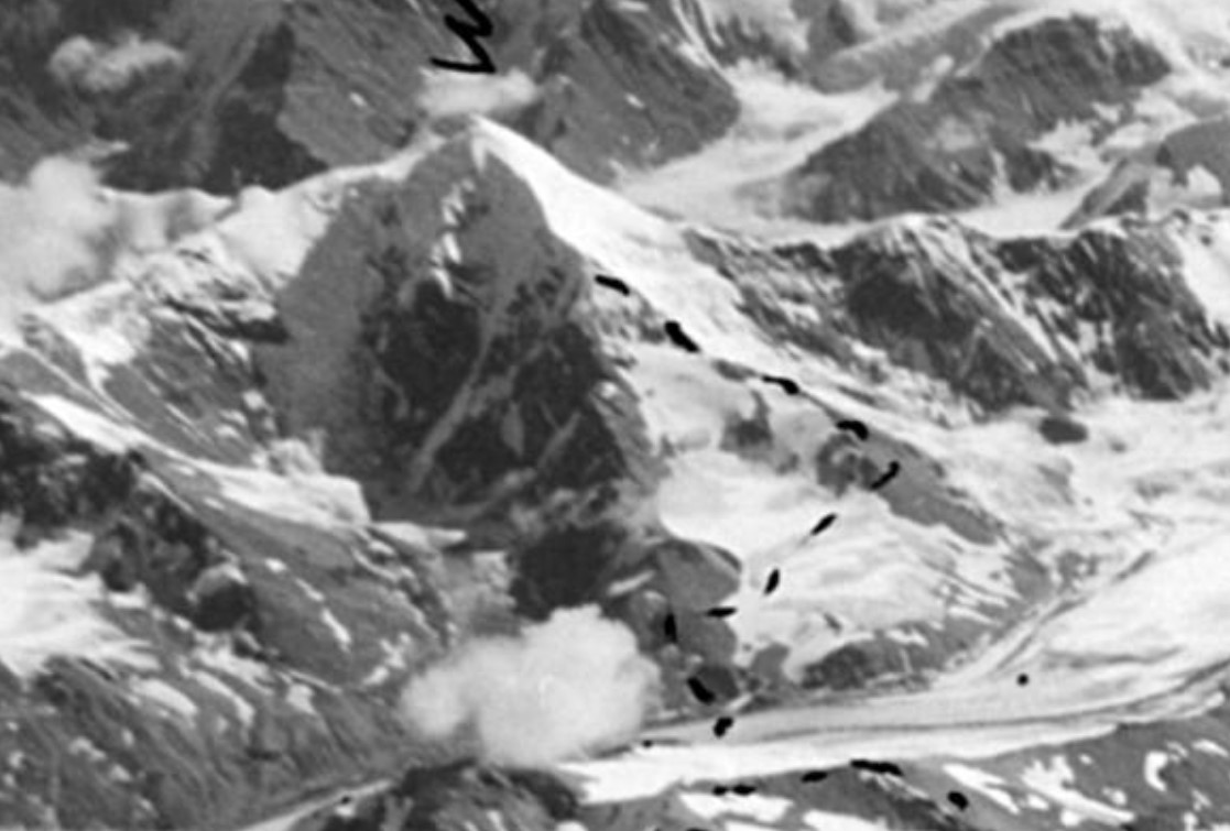 White Princess is faring better, but the summit glacier is also thinning on the edges, as well as the terminus. A snippet of the larger Deltas photo from the 70’s, shown below, shows the extent of the glaciers before humans accelerated climate change to its current (still increasing) rate. The glacier coming down the northwest shoulder of the summit no longer has a valley feature, that is all moraine. The glacier on the west side, between the west ridge and the southwest ridge, used to fan out but now has receded to just a remnant in the seat of the bowl.