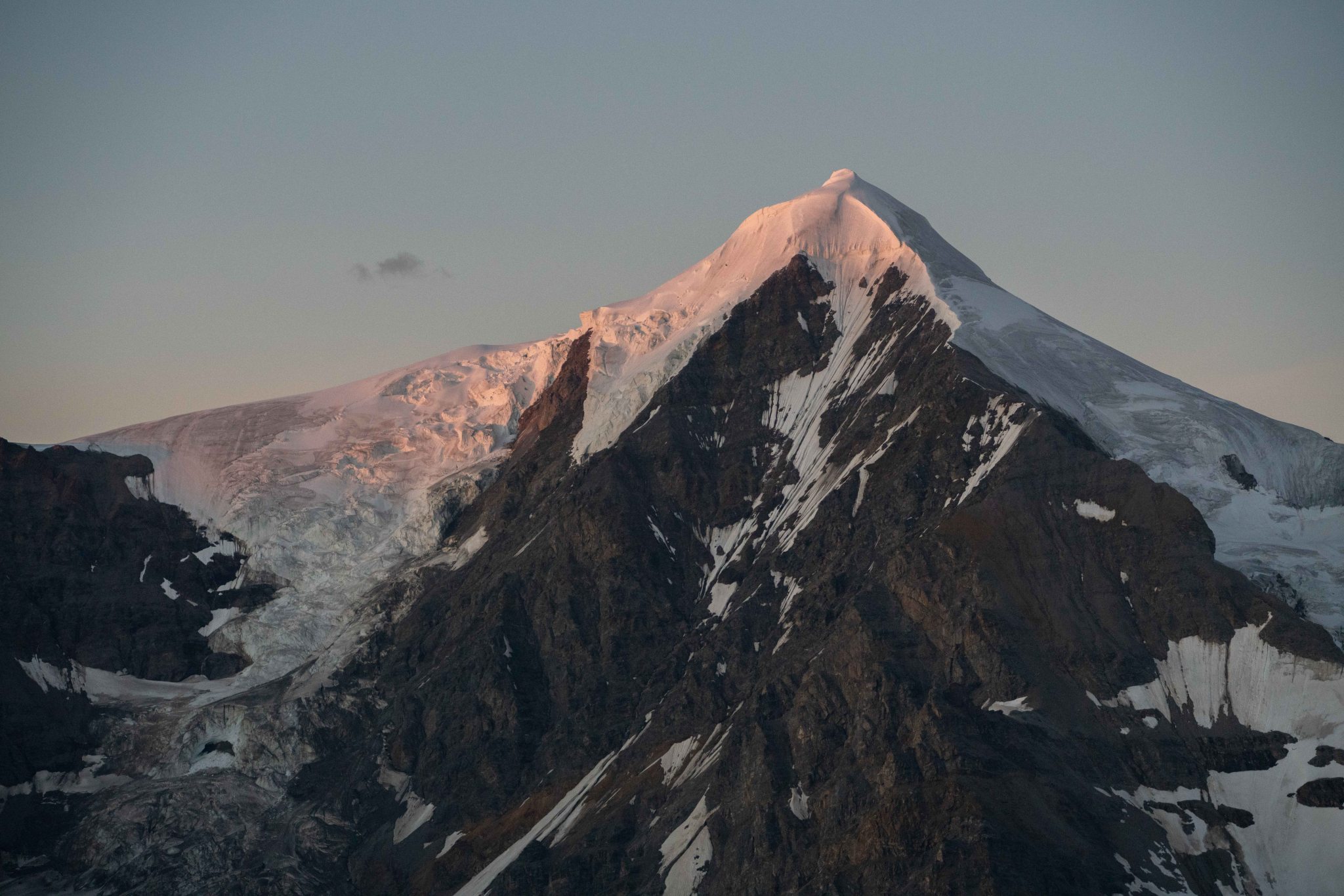 I emailed Stan about T2, the second major peak on the ridge, asking if it were glaciated. From imagery, it would appear the top might be iced or snowed over. This was a distinction with an important difference: whereas bare glacier ice was solid, snow could hide a bergshrund. Stan replied somewhat cryptically that he had gone past T2 and it appeared to be somewhat glaciated. “Somewhat glaciated” caused no shortage of consternation on our part. In preparation, we brought crampons just in case we encountered steep, hardpacked snow. We figured we’d be able to see the top of T2 soon. We were incorrect.